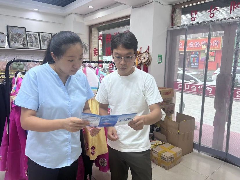 太平人壽丹東中支工作人員在中朝邊境“高麗街”向商戶宣傳金融知識