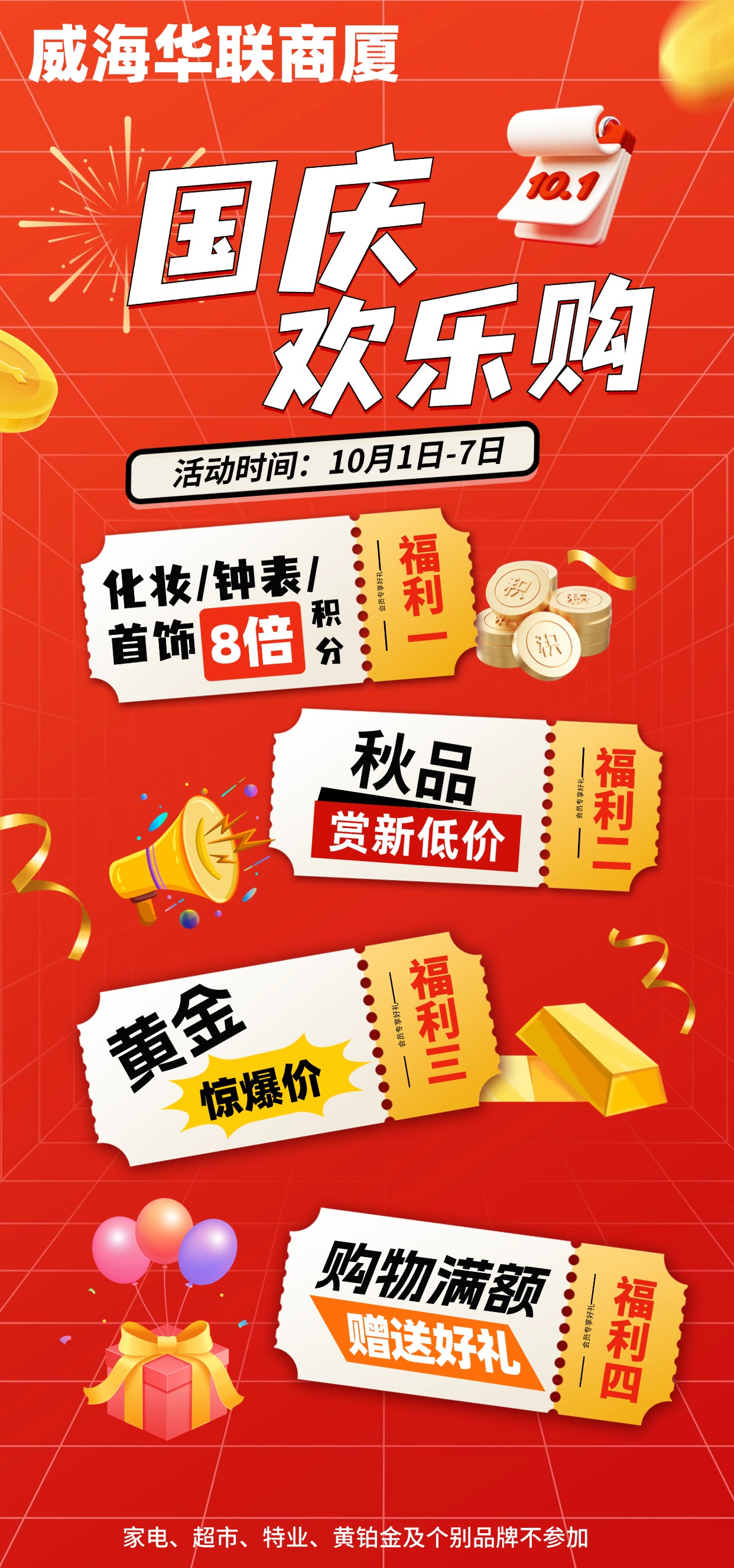 10月1日-7日,威海華聯(lián)商廈國(guó)慶歡樂購