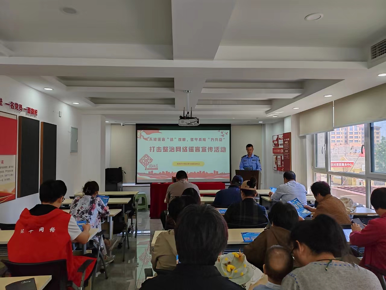 為深入推進打擊整治網(wǎng)絡謠言專項行動,有效凈化網(wǎng)絡環(huán)境,提升社區(qū)居民網(wǎng)絡道德素養(yǎng),近日,橋頭派出所組織民警到濱河社區(qū)開展“不被謠言迷雙眼,堅守真相方向盤”打擊整治網(wǎng)絡謠言宣講活動。
