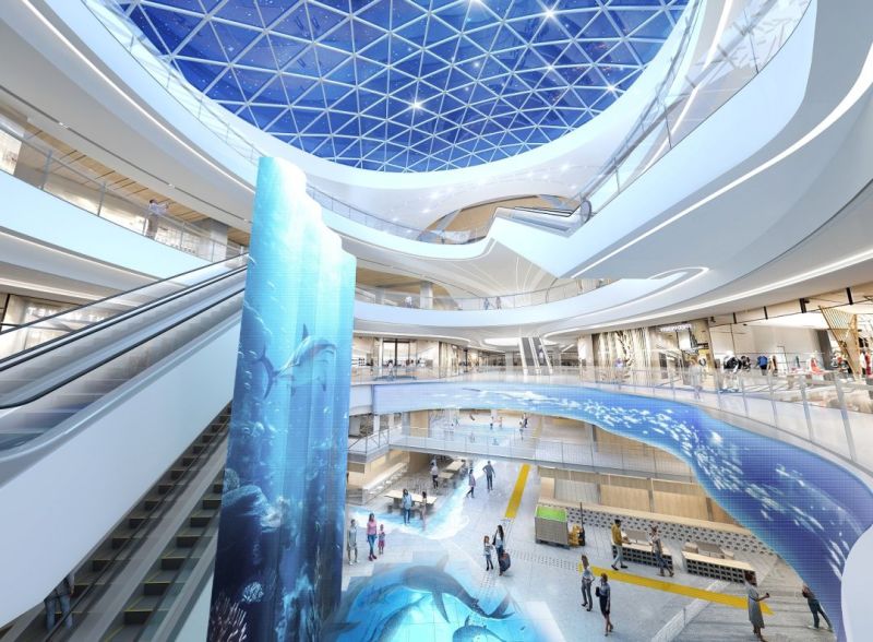 鯤鵬水擊,浩浩湯湯。威海灣城市綜合體以“鯨魚出?!睘殪`感,其中“鯨脊”部分為大跨度拱結(jié)構(gòu)配合預(yù)應(yīng)力空心樓板構(gòu)成,為全國首創(chuàng),其背后蘊(yùn)含的包容、博愛、拼搏等海洋文化,也為該項目增添了學(xué)養(yǎng)深厚的極致韻味。定位城市功能新提升、城市形象重塑造的威海灣城市綜合體,致力于創(chuàng)造一個多元化的現(xiàn)代城市商業(yè)空間。