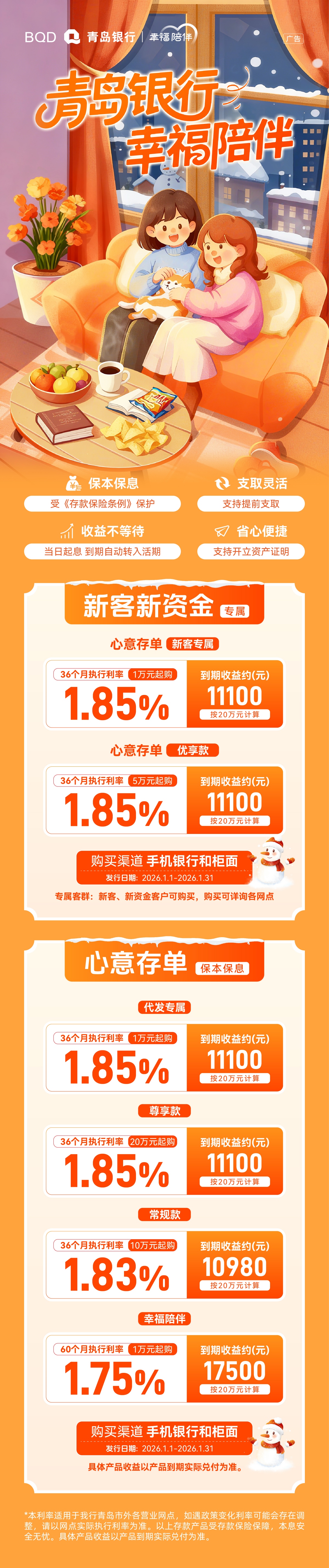 2026年1月青島銀行新客心意存單