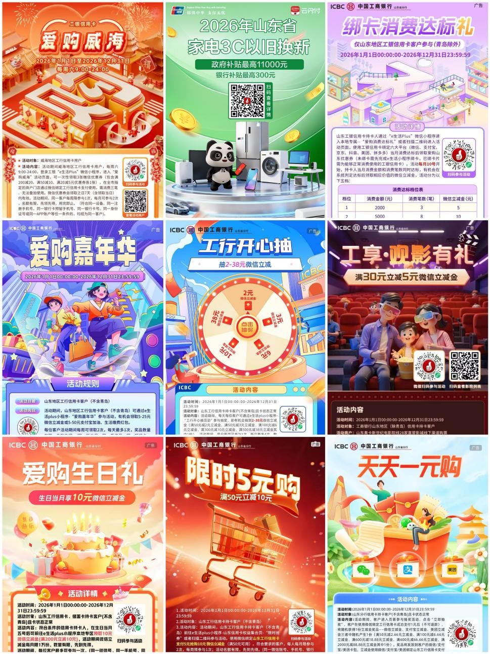 春潮涌動(dòng)處,民生答卷新。近年來,站在激發(fā)消費(fèi)活力賽道上,中國(guó)工商銀行威海分行始終堅(jiān)守“金融為民”初心,立足威海本地民生需求,將普惠金融服務(wù)與地方經(jīng)濟(jì)發(fā)展深度融合。精準(zhǔn)發(fā)力供暖繳費(fèi)、家電更新、商超餐飲等核心消費(fèi)場(chǎng)景,推出系列重磅優(yōu)惠活動(dòng),以“真金白銀”點(diǎn)燃市民消費(fèi)熱情,以大行擔(dān)當(dāng)書寫著服務(wù)威海高質(zhì)量發(fā)展的生動(dòng)答卷。