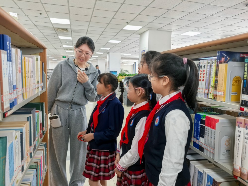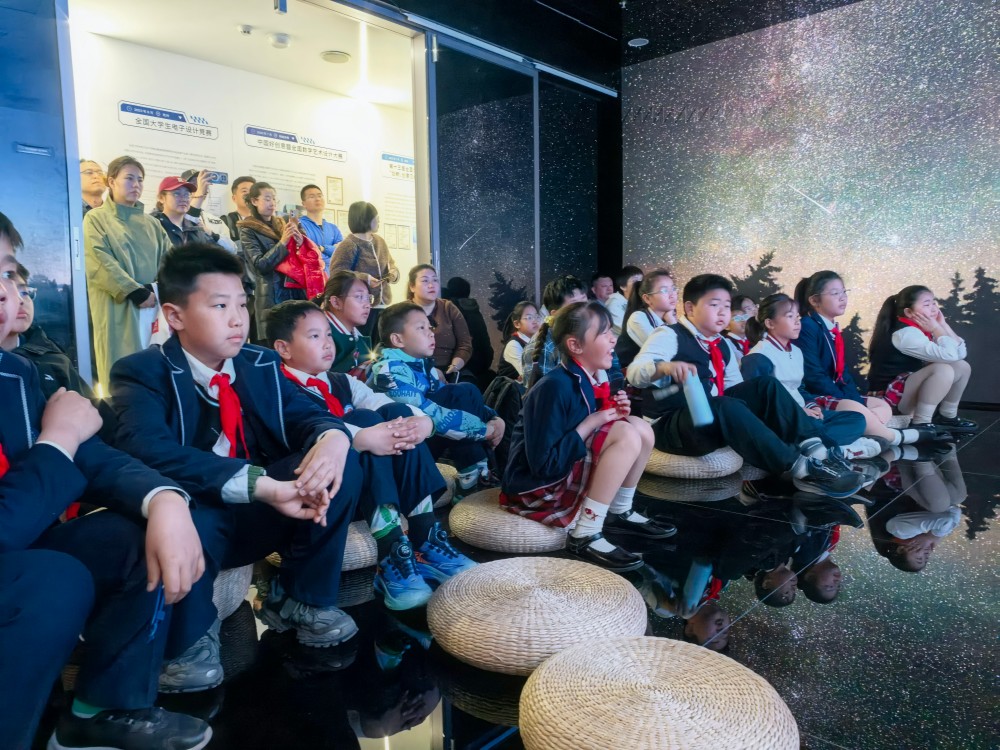 隨后,大家走進山東大學(威海)圖書館。這座現(xiàn)代化圖書館以豐富的館藏和先進的管理模式令學生和家長贊嘆不已。據介紹,圖書館館藏紙質文獻超過800萬冊,同時配備了現(xiàn)代化的管理系統(tǒng)和多媒體操作平臺。最受孩子們歡迎的是圖書館內的360度全景科普屏——輕輕點擊,宇宙星辰、深海世界、遠古恐龍、浩瀚星空便環(huán)繞身邊,帶來沉浸式的閱讀與學習體驗。孩子們紛紛感嘆:“原來圖書館不只是看書的地方,還可以這么酷!”在這里,書香文化與現(xiàn)代科技完美融合,讓孩子們真切感受到閱讀的魅力和知識的力量。