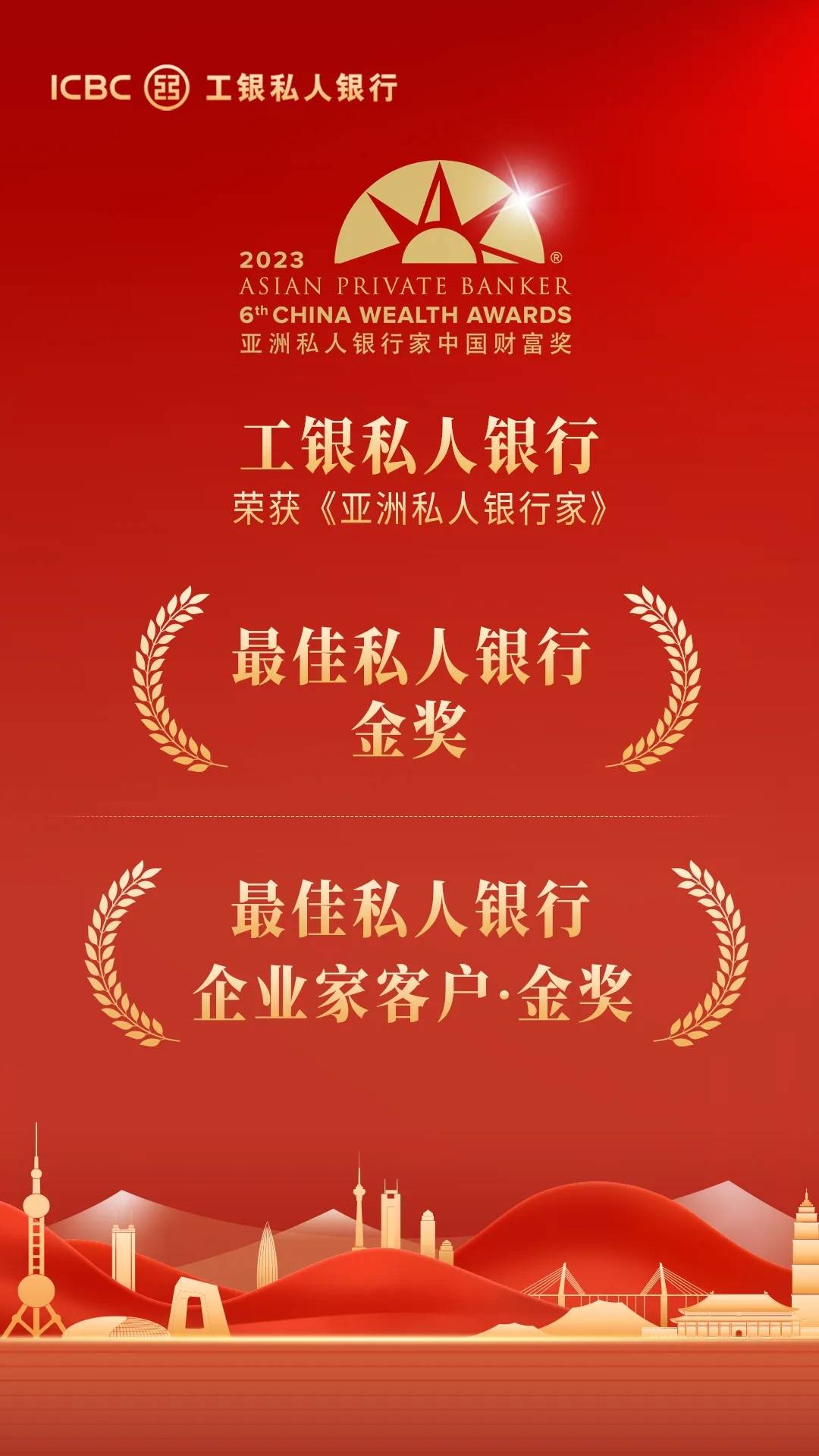 近日,香港《亞洲私人銀行家》雜志公布“2023年中國財富獎”評選結(jié)果,工銀私人銀行從眾多同業(yè)競爭者中脫穎而出,榮膺“最佳私人銀行——國有銀行組·金獎”及“最佳私人銀行——企業(yè)家客戶·金獎”殊榮?!秮喼匏饺算y行家》雜志作為全亞洲最有影響力的私人銀行媒體機構(gòu)之一, 以其專業(yè)的報道和深度的數(shù)據(jù)分析深受私人銀行與財富管理界信賴,此次榮獲《亞洲私人銀行家》雜志兩項大獎,這標(biāo)志著工銀私人銀行在綜合化服務(wù)能力和企業(yè)家客群服務(wù)能力表現(xiàn)得到權(quán)威媒體的充分肯定。