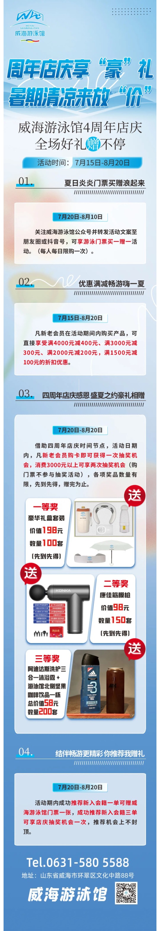 威海游泳館四周年店慶,全場(chǎng)折扣豪禮贈(zèng)不停!